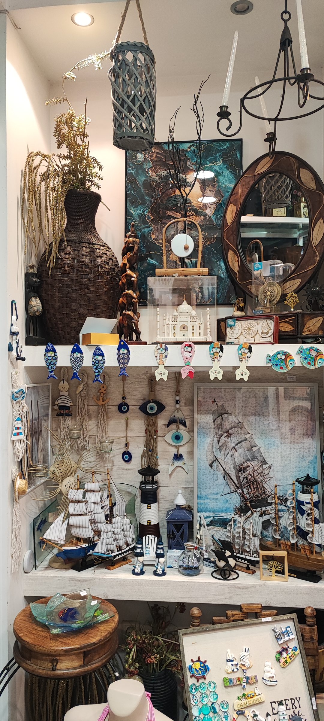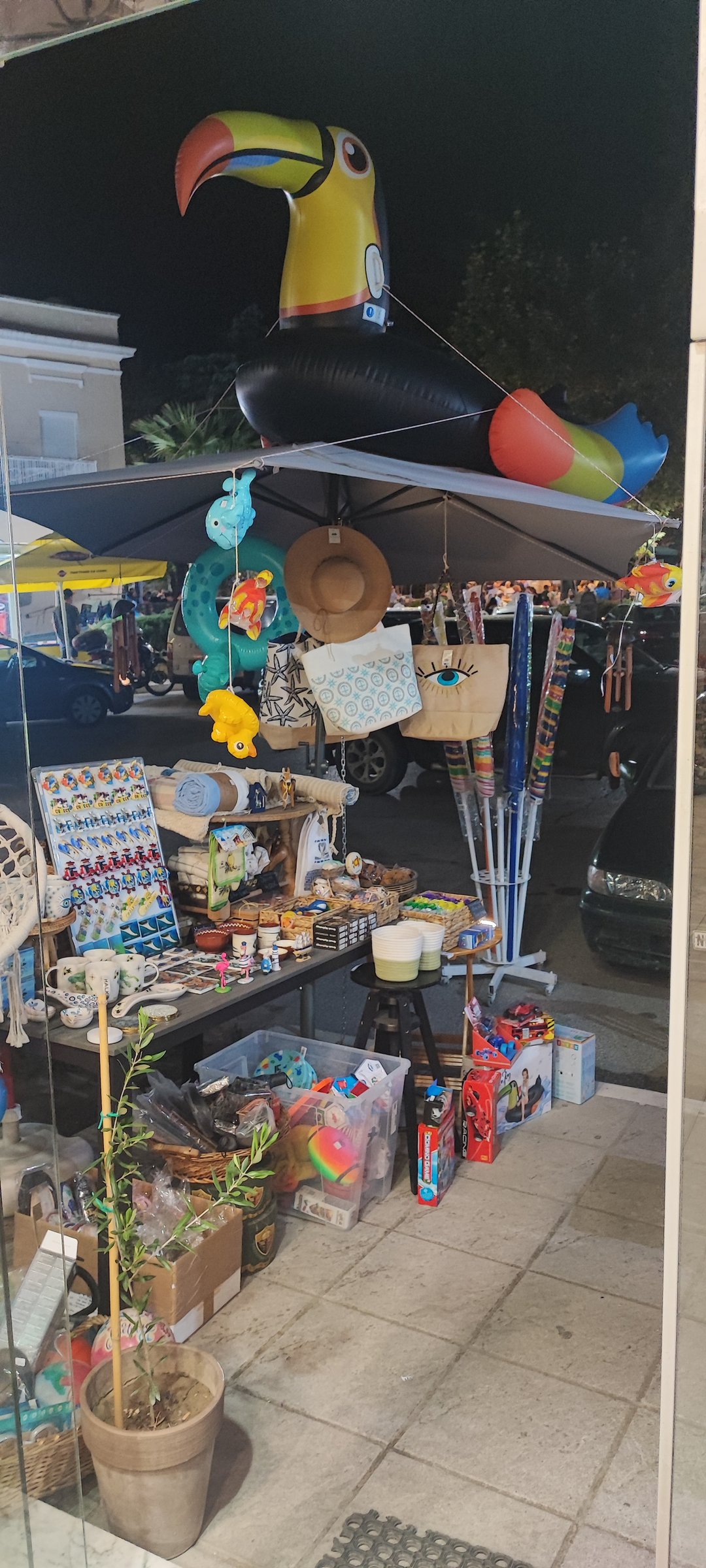 Αναμνηστικά, δώρα, ενδύματα, είδη διακόσμησης, είδη παραλίας, μαγιό, ομπρέλες θαλάσσης, πετσέτες θαλάσσης, καπέλα, αντηλιακα γαλακτώματα, σωσίβια, παιχνιδια, χειροποίητα έπιπλα, αντικές, κ.α. Gifts, souvenir, clothes, swimming suits, beach towels, umbrellas, suncreams, hats, beach accessories, vintage furniture, etc.
